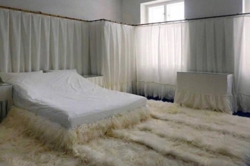Creature comforts for passengers exceed even the most luxurious motorhomes, with a bedroom, full bathroom, kitchen, and living room area. Dunkel reportedly spent $20,000 on wiring alone, and installed an on-demand water heater, on-board air compressor, rear hoist, flat-screen TVs, and Kenwood Supreme entertainment system with flip-up exterior speakers (so you can play Flight of the Valkyries for the onlookers as you roll out of town). It can all be controlled by a wireless remote control from outside the truck, of course.